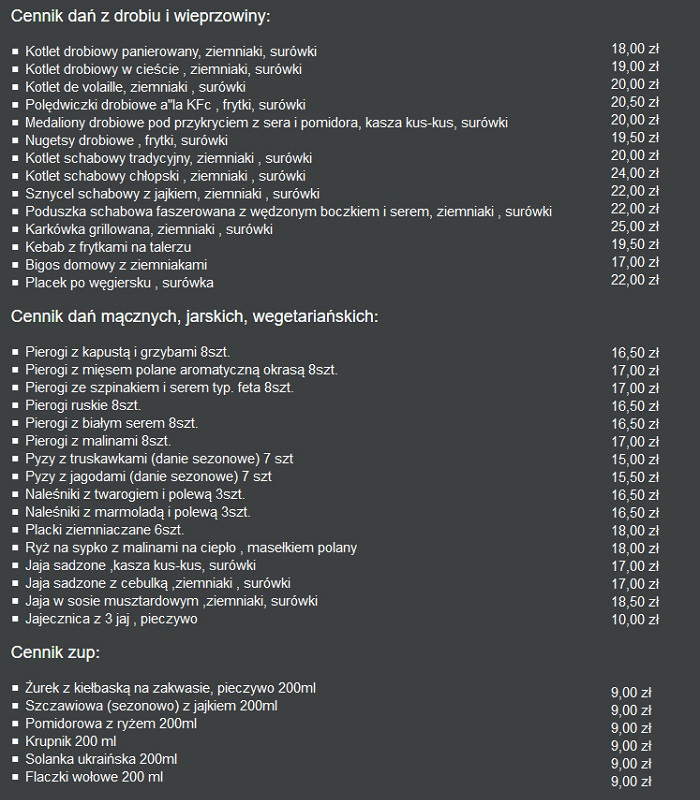 | Poniedziałek | zamknięte
